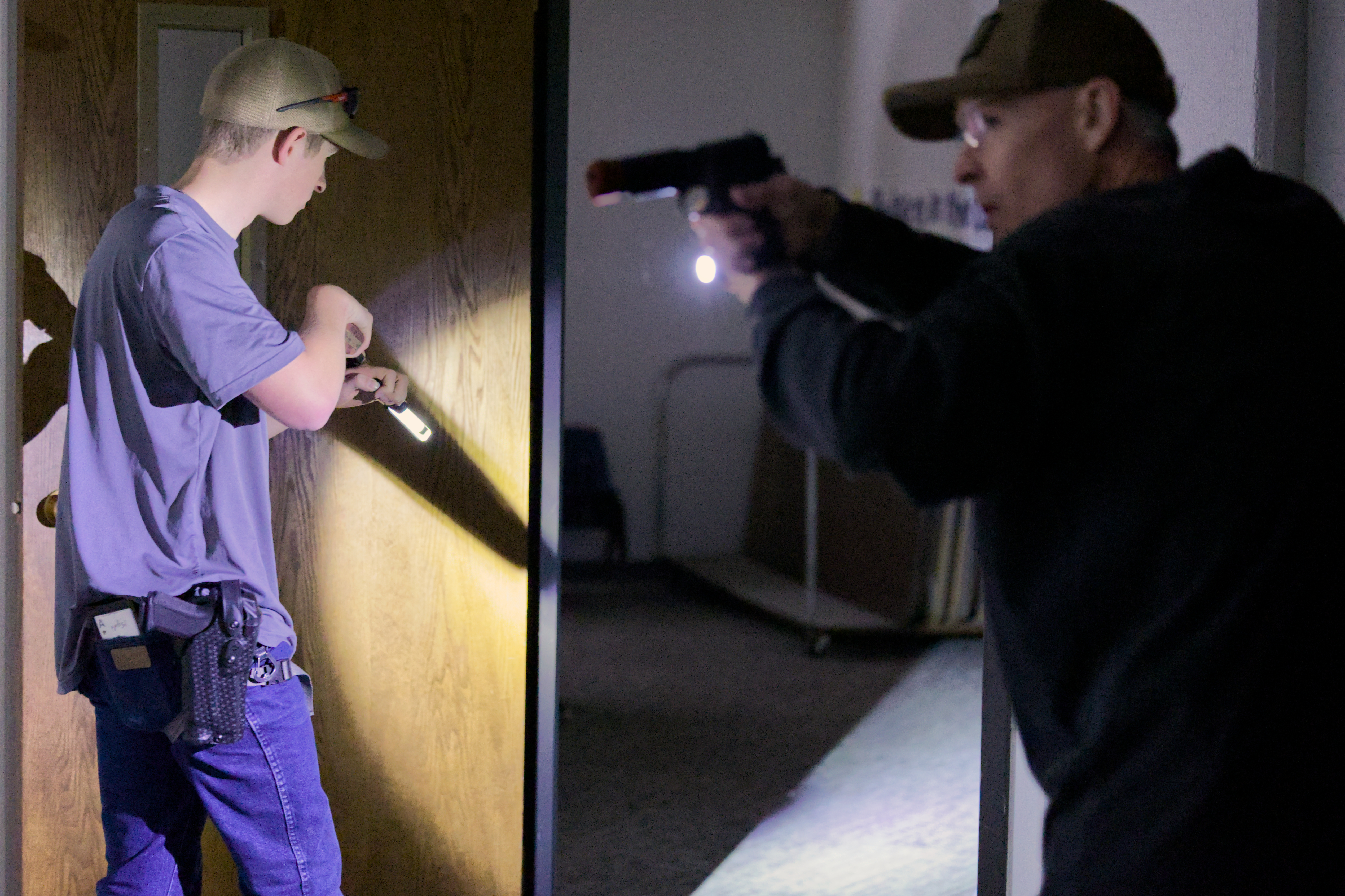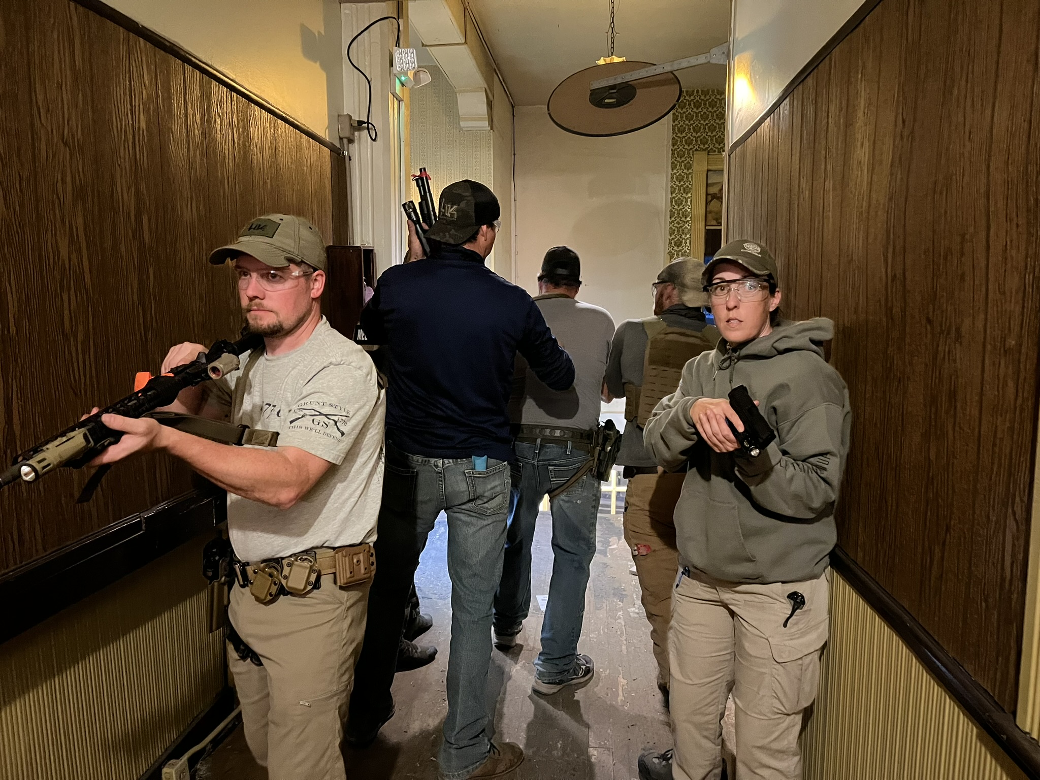 For the evening, we work on-site in your team’s church to go though single- and two-person CQB basics, including corners, doorways, and light usage.