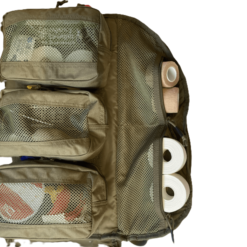 We are updating this product to improve quality and change some of the contents. The new pack, priced at $1,075.00, features the Eberlestock Mission Medic pack. Email Jonathan@FrontlineResponseMT.com for information on the new pack if you are interested. The new pack, available in Coyote Brown and Multicam, can be selected at checkout when you click “Order Now” above.